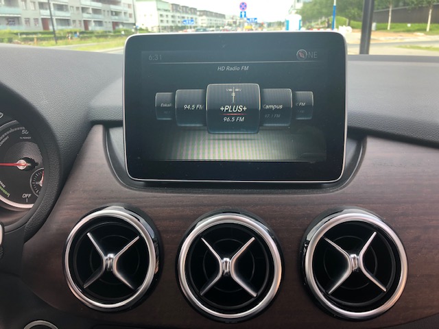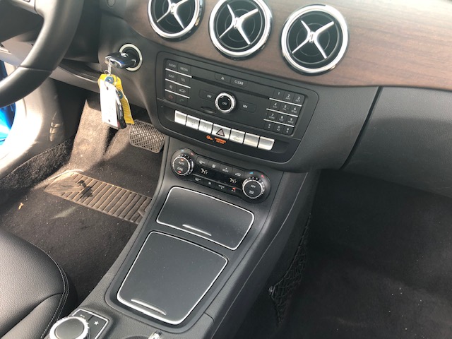 Samochód ma duży wyświetlacz. Mimo, że jest to wersja amerykańska, to nawigacja i radio można łatwo przeprogramować w serwisie. Skoro jesteśmy przy serwisie , to trzeba powiedzieć o tym, że egzemplarz opisywany mimo, że jest ze stanów i ma już cztery lata , to serwis Mercedesa umożliwia przepisanie gwarancji na baterie. Podobnie jest z Volkswagenem. Warunkiem jest to, że auto musi być bezwypadkowe .